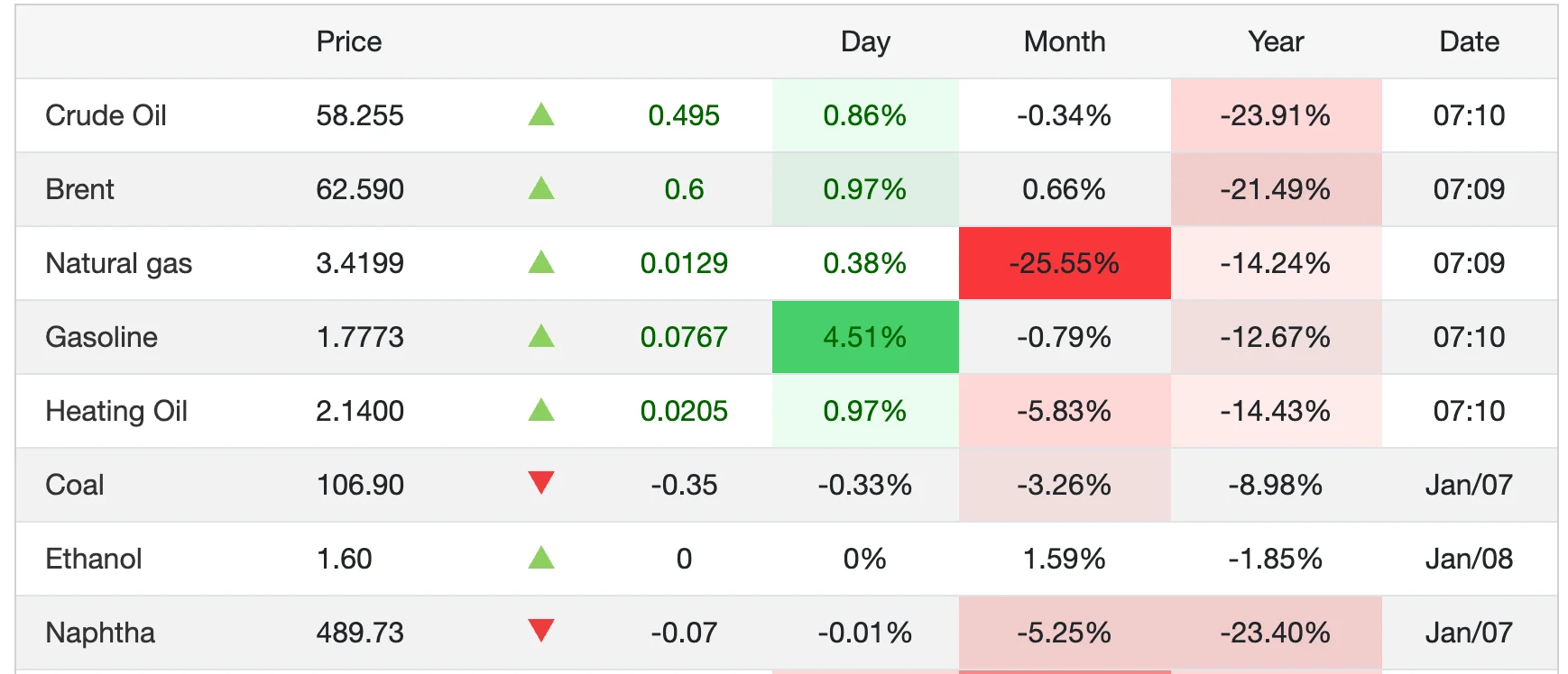 Dầu WTI: khoảng 58,2 USD/thùng, tăng 0,5 USD/thùng (≈ +0,86%)