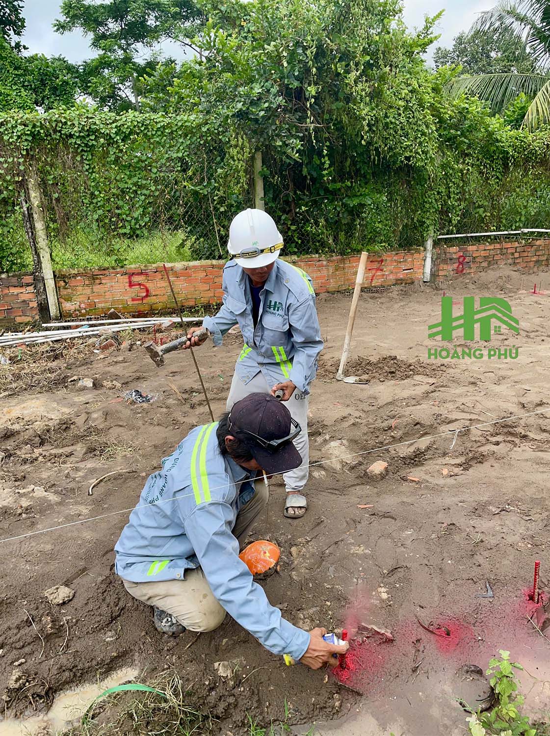 Đội thi công đang đo đạc đất