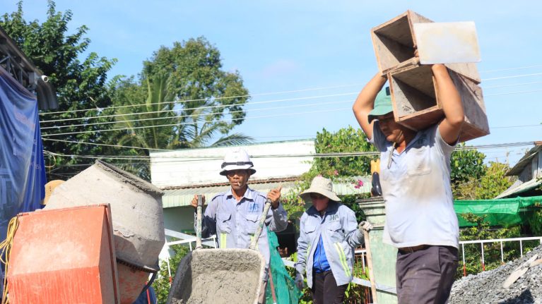 Đội công nhân đang thi công