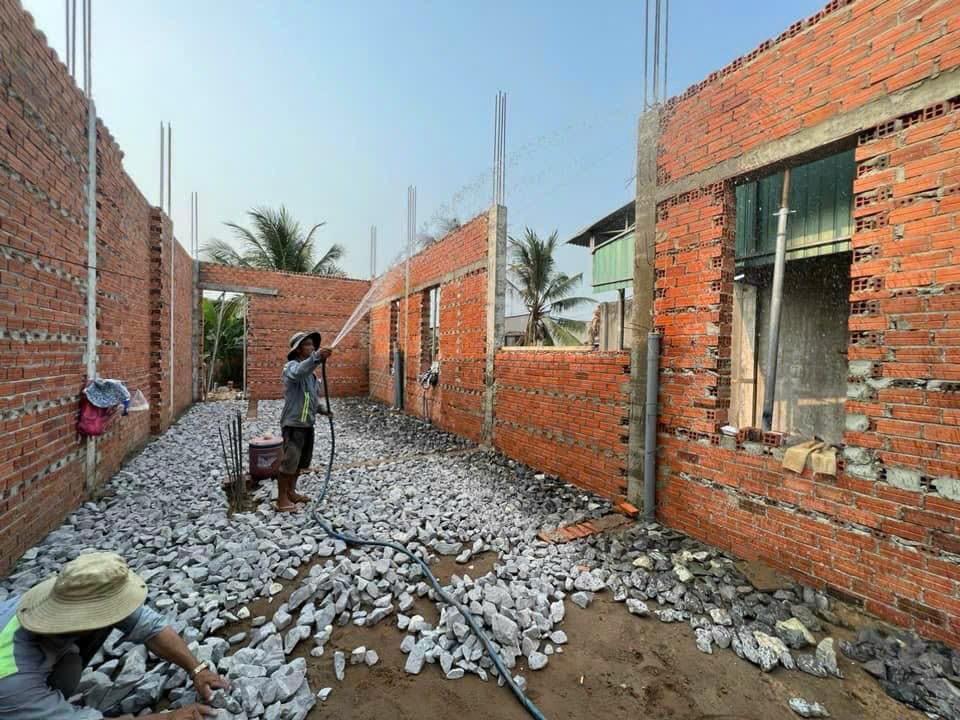 Bước 3: Lắp đặt hệ thống đường ống cấp và thoát nước nóng lạnh. Xây tường gạch 100mm hoặc 200mm, theo bản thiết kế. Dựng khung bao cửa gỗ, cửa sắt.